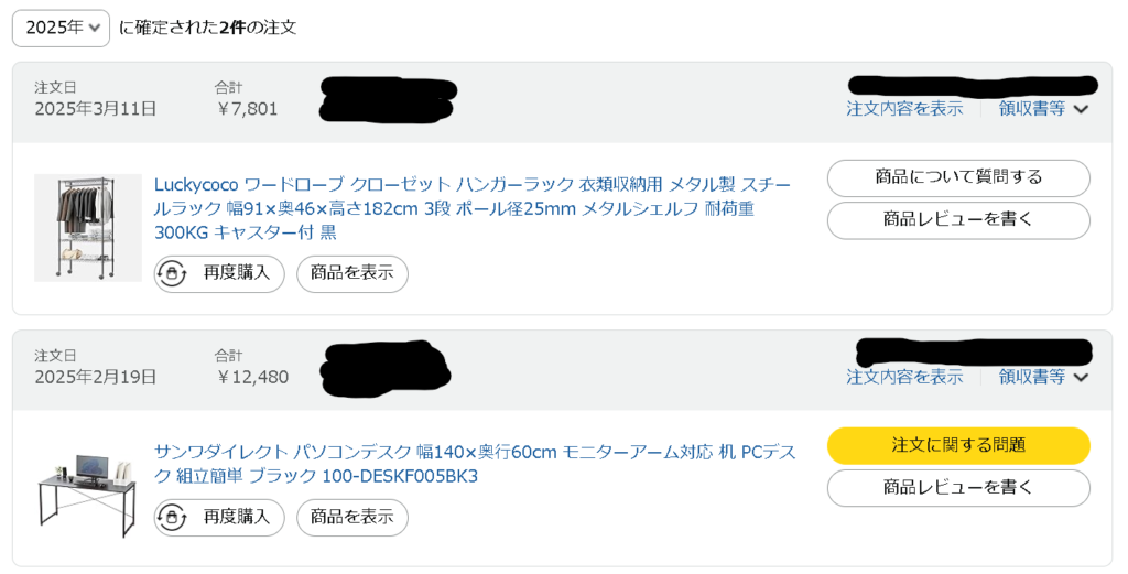 ※2025年のAmazon購入履歴を見返したらこれだけでした。本当か…?(笑)