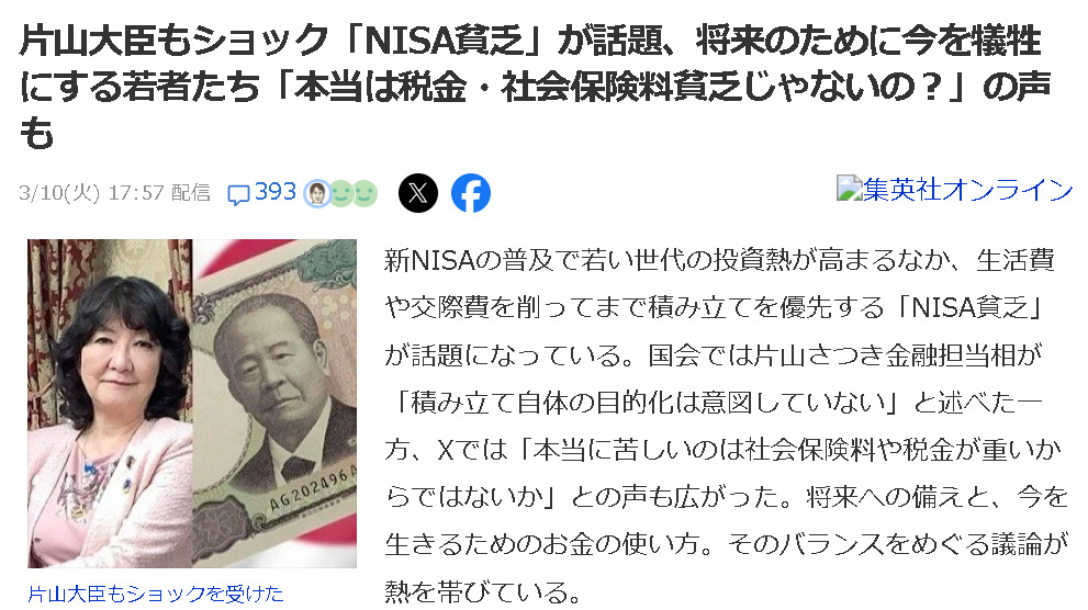 そのため「NISA貧乏」が社会問題のように扱われていることには、