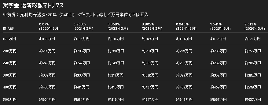 - ※奨学金の金利は執筆時(2026年1月時点)の
