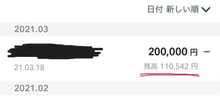 ※奨学金完済直後の口座のスクリーンショット画像。